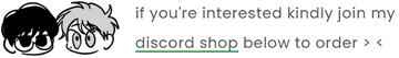 > i only allow one or two minimal revisions, more than that, i will charge extra fee !> you can order thru my discord server or by sending a message thru my discord account, either way works !